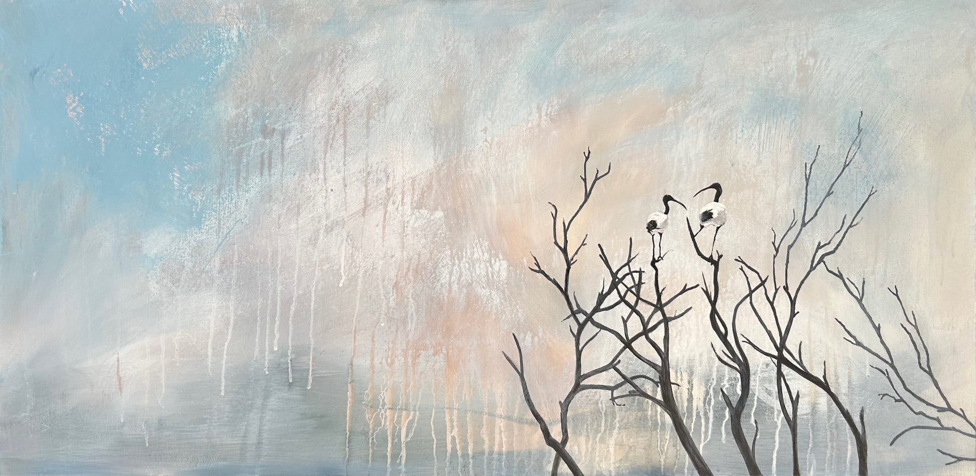 But their symbolism doesn’t stop there — ibises are also associated with love, romance, and unity. That’s why I’ve titled this piece Lovey Dovey. It speaks to their gentle, affectionate nature, balancing their resilience with tenderness and connection.
