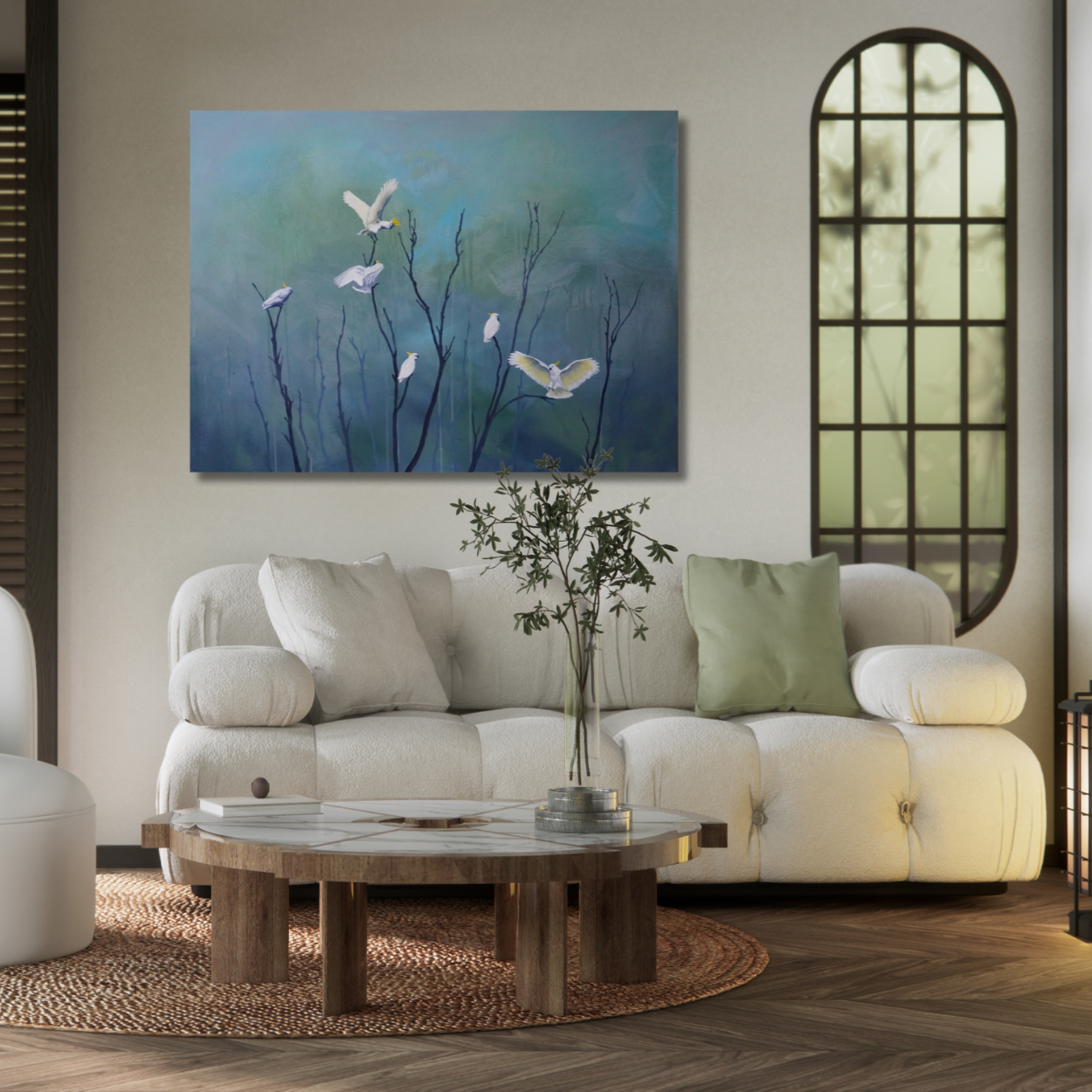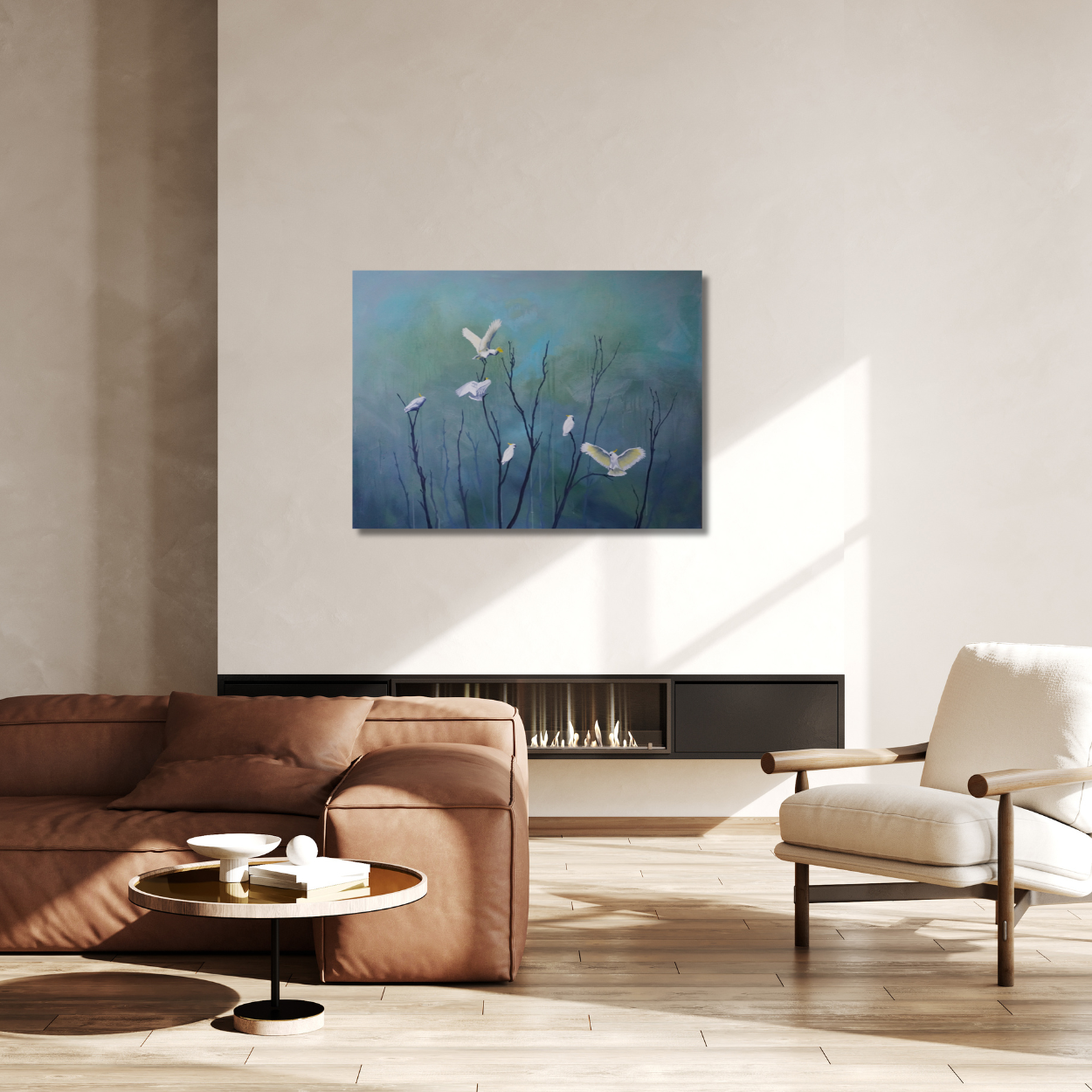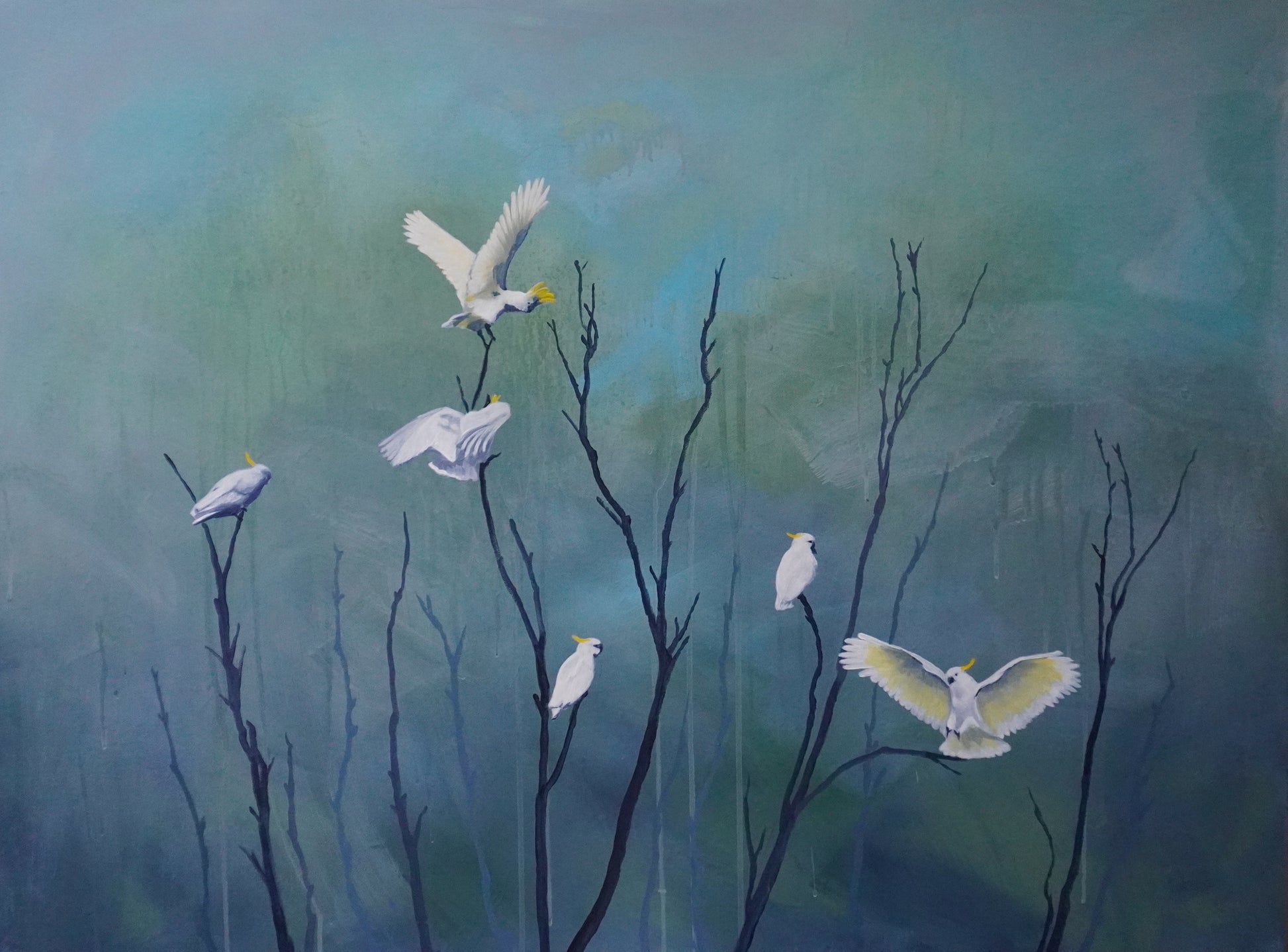 Deep Forest is not a place in nature—it’s a place within. A mindspace where white cockatoos rise like sudden sparks, like thoughts lighting up in the quiet. They are not separate from the dark—they appear because of it. Gentle beacons, guiding without force.