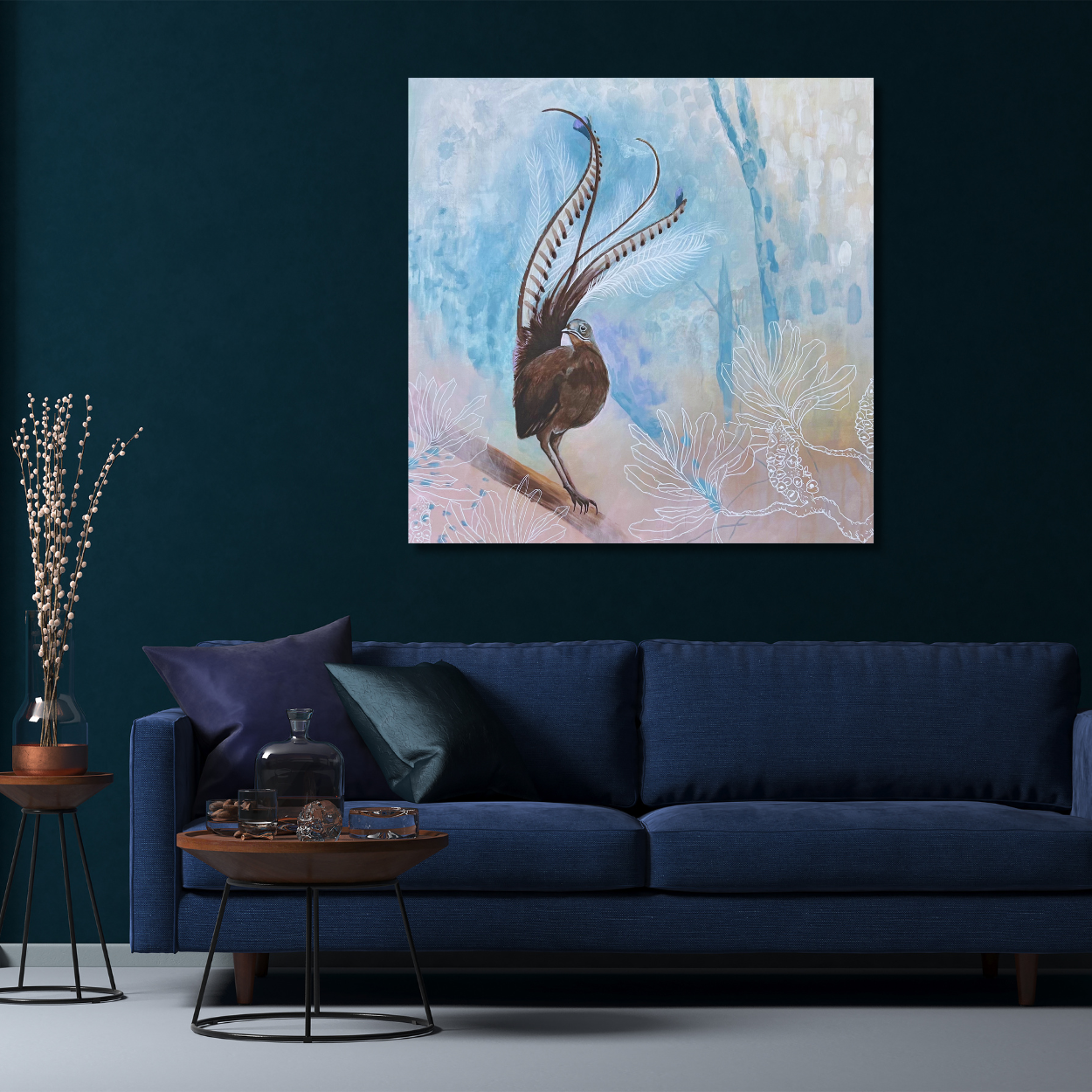 In symbolic tradition, the lyrebird and the peacock are seen as earthly counterparts of the Phoenix — one of the four celestial creatures in Feng Shui. The Phoenix embodies hope, renewal, and transformation — a rising from the ashes that speaks to the potential for joy and fortune after hardship.