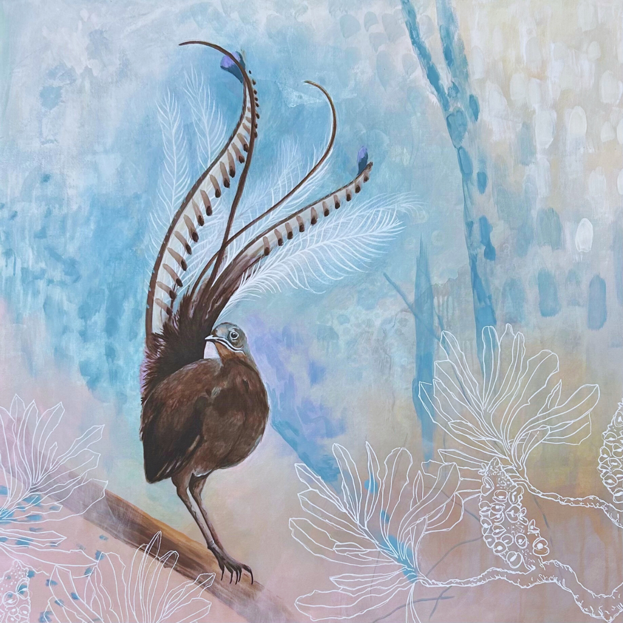 Contrary to their misleading name, lyrebirds don’t “lie” — instead, they are extraordinary mimics, capable of imitating the calls of countless other species. They are storytellers and dancers of the bush, engaging in their signature ‘chicken scratching’ as they forage. In this, they symbolise communication, adaptability, and the joyful rhythm of life itself — a speaker of all languages and a dancer of life.