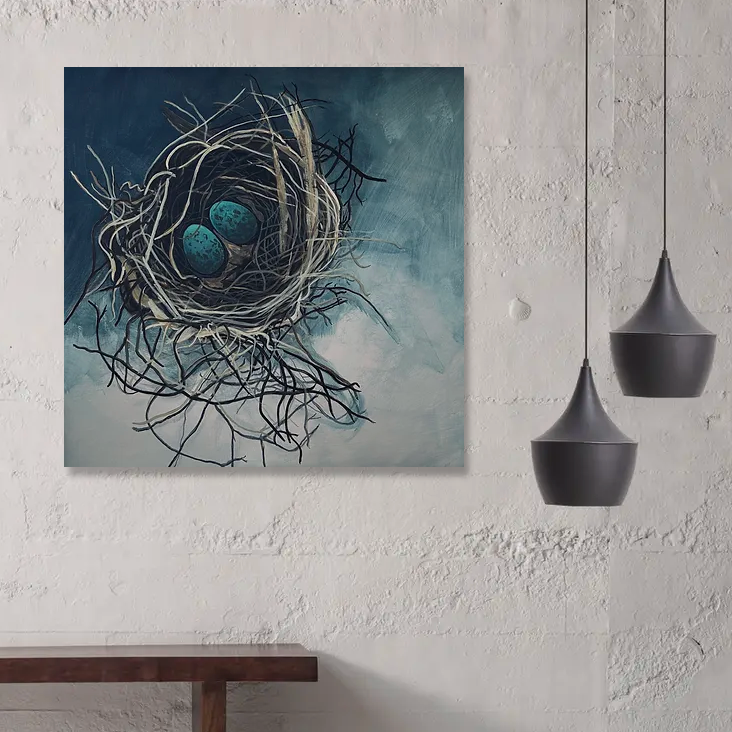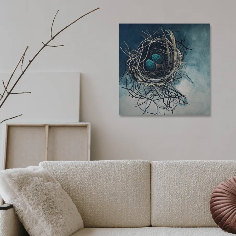 In symbolism and Feng Shui, bird nests represent home, new beginnings, motherhood, protection, and spiritual connection. The magpie’s nest, in particular, reflects strong foundations and the instinct to guard what matters most. This piece is a tribute to creating space for growth, nurturing, and divine guidance — making it a meaningful addition to any home.