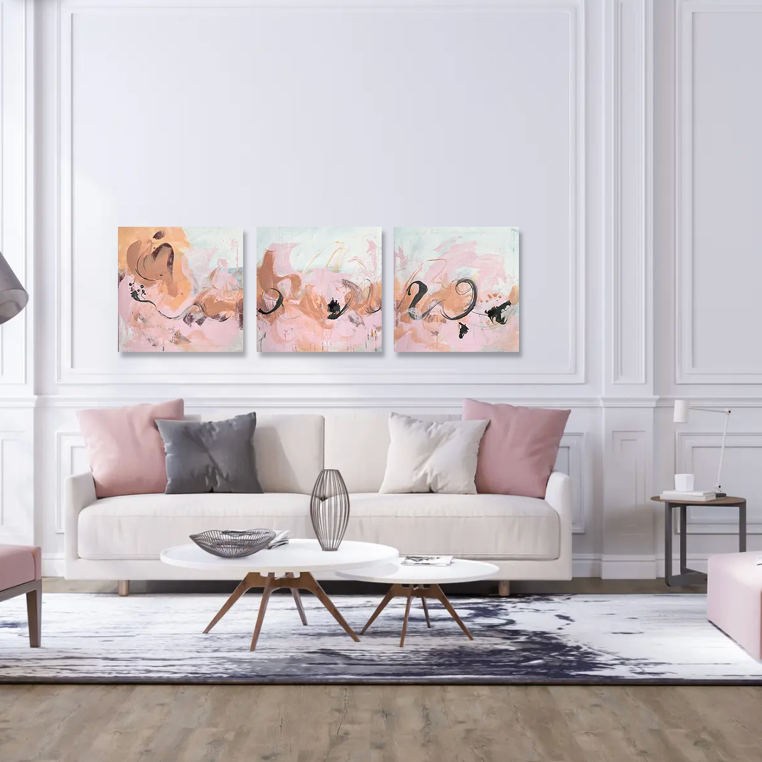 This painting is a triptych, stretching out lengthwise to create a sense of space that feels long, flowing, and dynamic. Zest! Did you know that in positive psychology, zest refers to “having energy, enthusiasm, and a passion for life”? Zest is crucial for our well-being. People with high levels of zest tend to enjoy better mental and physical health and greater life satisfaction. So, this piece is surely one of the best Feng Shui artworks to display in your home. Imagine filling your living space with the intention of inviting the Zest of Life! At least in one room, since according to Feng Shui, zest thrives best in your living spaces—while for bedrooms, a more restful vibe is recommended.